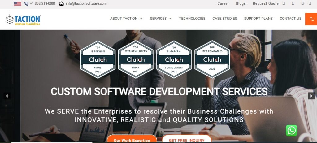Taction SoftwareFull-stack Drupal expertise, comprehensive digital solutionsWeb development, custom modules/themes, API integrations, performance optimization, implementation supportClients needing reliable, scalable Drupal solutionsOpen, collaborative approach, scalable, and sustainable solutions