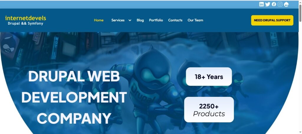 Founded in 2007, InternetDevels is one of Ukraine’s most experienced Drupal Development Firms. Highly regarded in the Drupal community, they have contributed to Drupal modules and meet ongoing community efforts. Their services cover the full Drupal lifecycle from custom builds and performance optimization to troubleshooting and long-term support.